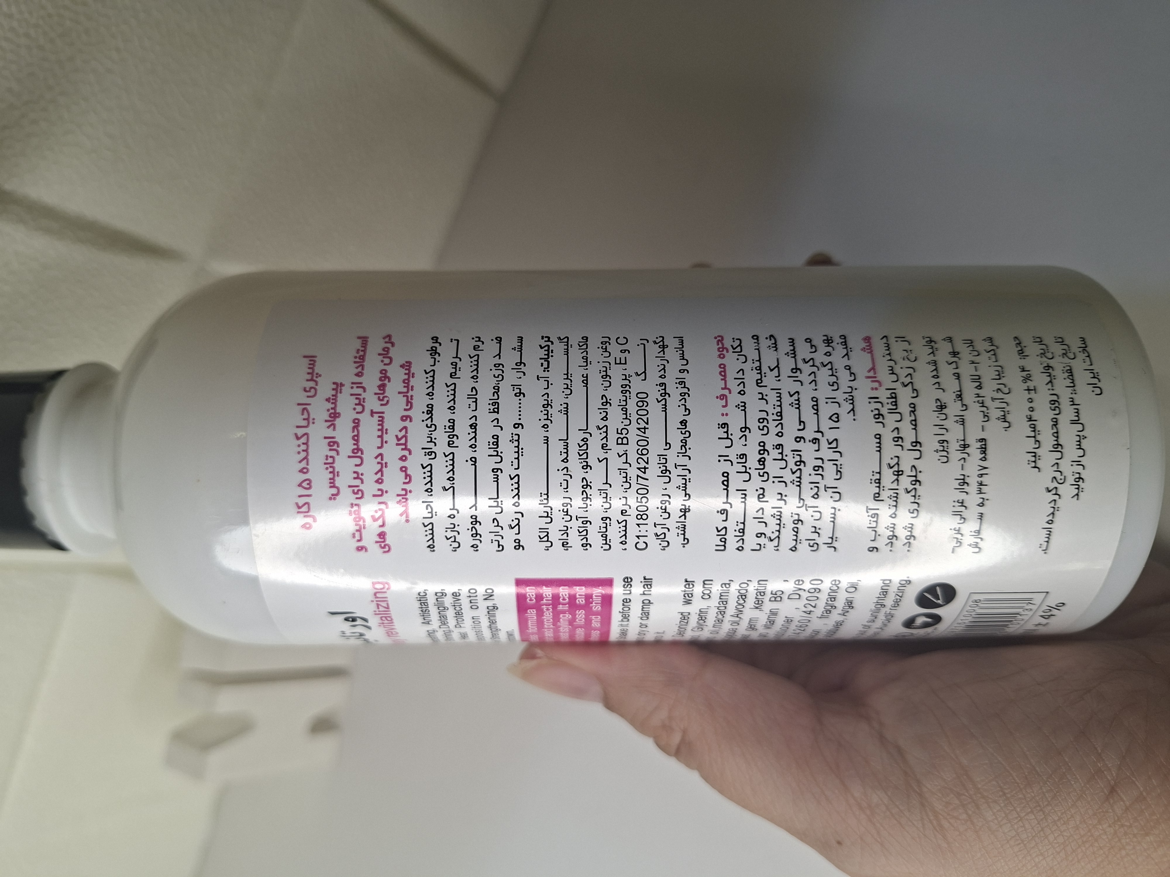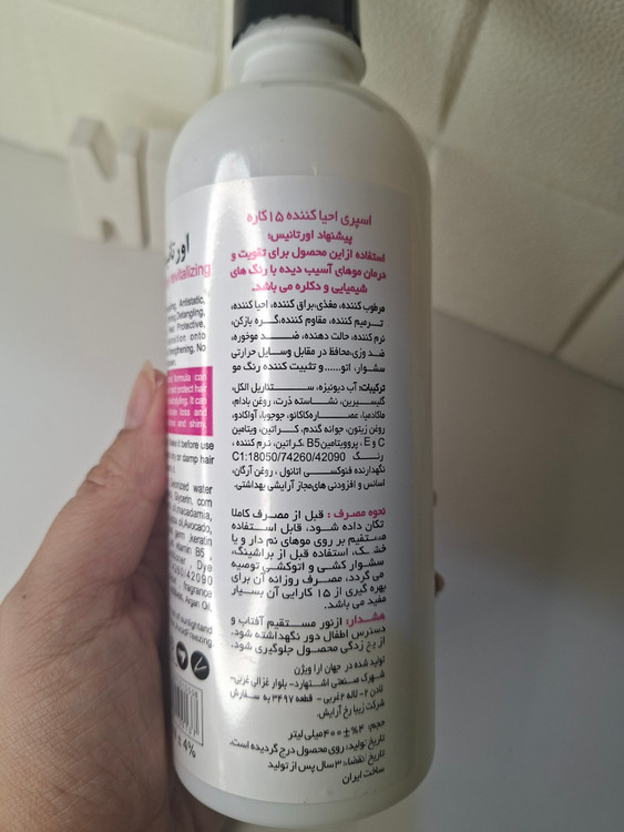 اسپری ۱۵ کاره احیا کننده ، مرطوب کننده ، مقاوم کننده ، گره باز کن ، نرم کننده ضد وز ، محافظ در مقابل وسایل حرارتی سشوار و اتو و تثبیت کننده رنگ مو حاوی کراتین هیدرولیز شده و جوانه گندم